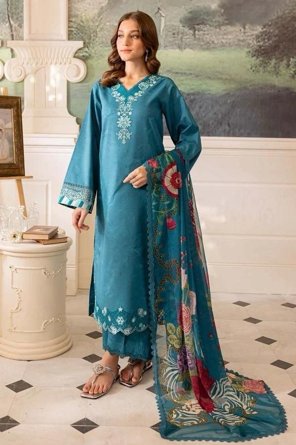 Front Lawn Printed Neckline Emb Patch Daman Embroidery Patch Sleeves Printed & Sleeves Full Heavy Embroidery Patch Back Lawn printed Trouser Lawn Printed
