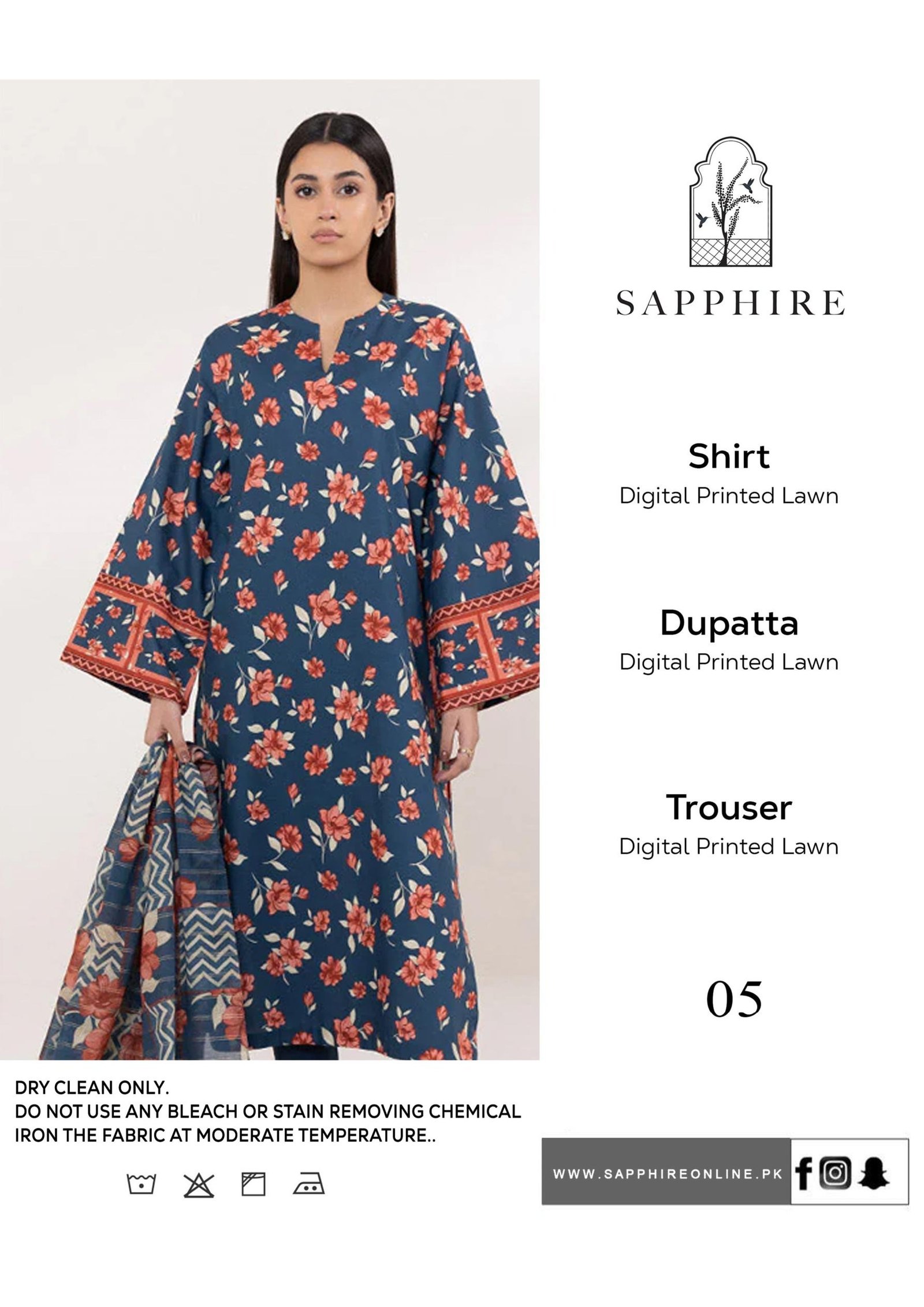 SAPPHIRE | IZNIK | BAROQUE (PREMIUM LAWN) 3pcs